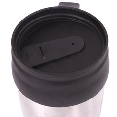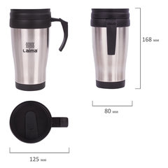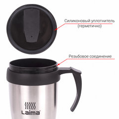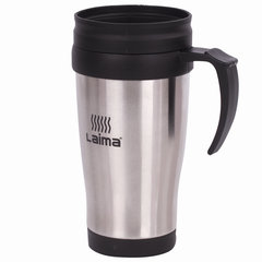Автокружка 400 мл, термостакан с ручкой, винтовая крышка-клапан, пластик/сталь, серебро, LAIMA, 605126