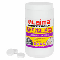 Белизна в таблетках LAIMA PROFESSIONAL – это удобное средство на основе хлора. Предназначено для отбеливания, дезинфекции и уборки. Имеет широкую область применения и высокую эффективность обеззараживания.Средство представляет собой быстрорастворимые таблетки белого цвета с запахом хлора массой 3,2-3,5 г.
