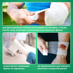 Благодаря хорошей растяжимости, которой обладает бинт, свобода движений конечности не ограничивается. В отличие от марлевых повязок которые могут прилипать к коже, бинт не приклеивается к кожным покровам и другим поверхностям, и отлично фиксируется.