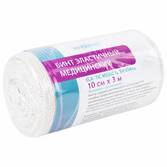 Бинт медицинский эластичный 3 м х 10 см с 2 застежками MERIDIAN