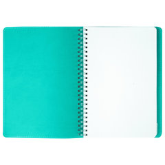Универсальная тетрадь BRAUBERG "Office PRO" для записей и заметок в офисе, учебе и повседневной жизни. Обложка из качественного кожзаменителя долго сохраняет привлекательный внешний вид, а прочная пластиковая спираль обеспечивает удобство в использовании.Бизнес-тетрадь в бирюзовом цвете - отличное дополнение к строгому офисному стилю. Такой аксессуар станет первым помощником для личных записей, планирования деловых встреч и мероприятий, а также для ведения бизнес-проектов и блистательных новых идей!