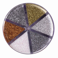 В наборе 6 цветов металлик по 10 грамм каждого цвета. Удобный диспенсер, сделанный по принципу солонки, позволят использовать только выбранный цвет, не задействовав при этом другие. Компактная упаковка 6,5х6х6 см позволяет хранить все цвета в одном месте.