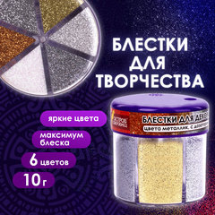 Блестки (глиттер) для декора, поделок, DIY, творчества, оформления, ОСТРОВ СОКРОВИЩ, МЕТАЛЛИК, диспенсер с дозатором, 6 цв по 10 г, 662224