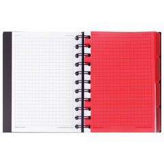 Яркий оригинальный блокнот для записей и заметок с практичной пластиковой обложкой. Удобные съемные разделители помогают лучше ориентироваться в записях, а резинка-фиксатор не позволит блокноту раскрыться в сумке.Блокнот формата А6 на евроспирали содержит 150 листов с линовкой в клетку, что позволяет зафиксировать большой объем нужной информации. Имеет боковое расположение переплета, 4 разделителя и резинку-фиксатор. Обложка выполнена из пластика. Внутренний блок состоит из белой офсетной бумаги плотностью 60 г/м2.