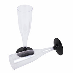 Бокал одноразовый 150 мл для шампанского "Флюте" пластиковый, черная низкая ножка, ВЗЛП, 1009П/Ч