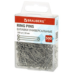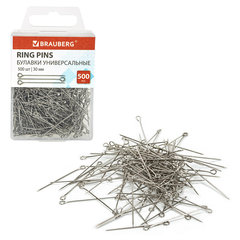 Булавки универсальные с головками-петельками BRAUBERG, 30 мм, 500 штук, в пластиковой коробке, 271319