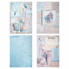 В набор входят 12 листов двусторонней бумаги плотностью 240 г/м2, содержащих 12 вариантов дизайна: 10 фоновых дизайнов и 2 набора с фигурными вырубками для вырезания. Стандартный размер бумаги (15х21 см) делает её удобной для использования в создании скрап-альбомов. Матовая бумага отличается высоким качеством печати.
