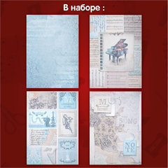 Стиль "Нотная Гамма" содержит спокойные дизайны в бежево-голубых тонах и прекрасно подойдёт для создания фотоальбомов, блокнотов для записей и других изделий.