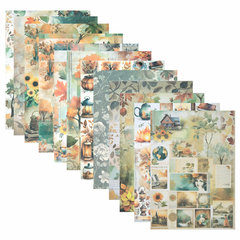 В набор входят 12 листов двусторонней бумаги плотностью 240 г/м2, содержащих 12 вариантов дизайна: 10 фоновых дизайнов и 2 набора с фигурными вырубками для вырезания. Стандартный размер бумаги (15х21 см) делает её удобной для использования в создании скрап-альбомов. Матовая бумага отличается высоким качеством печати.
