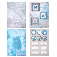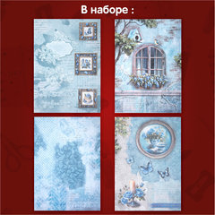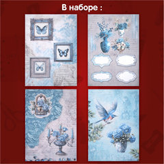 В набор входят 12 листов двусторонней бумаги плотностью 240 г/м2, содержащих 12 вариантов дизайна: 10 фоновых дизайнов и 2 набора с фигурными вырубками для вырезания. Стандартный размер бумаги (15х21 см) делает её удобной для использования в создании скрап-альбомов. Матовая бумага отличается высоким качеством печати.