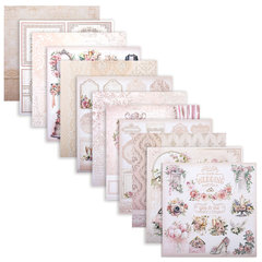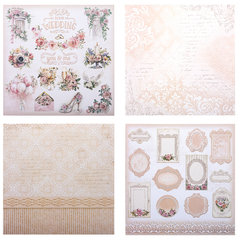 В набор входят 12 листов двусторонней бумаги плотностью 180 г/м2, содержащих 12 вариантов дизайна: 10 фоновых дизайнов и 2 набора с фигурными вырубками для вырезания. Стандартный размер бумаги 30х30 см делает ее удобной для использования в создании скрап-альбомов. Матовая бумага отличается высоким качеством печати.