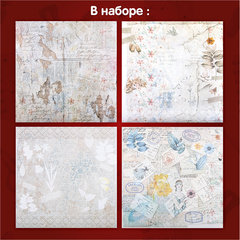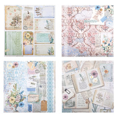 В набор входят 12 листов двусторонней бумаги плотностью 180 г/м2, содержащих 12 вариантов дизайна: 10 фоновых дизайнов и 2 набора с фигурными вырубками для вырезания. Стандартный размер бумаги 30х30 см делает ее удобной для использования в создании скрап-альбомов. Матовая бумага отличается высоким качеством печати.