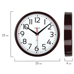 Производитель оставляет за собой право без предварительного уведомления вносить изменения в технические характеристики, комплектацию и конструкцию, не ухудшающие эксплуатационные характеристики изделия. Форма корпуса: круг, Материал корпуса: пластик, Цифры: арабские, Плавный ход стрелки: да, Цвет корпуса: коричневый, Цвет циферблата: белый, Ширина: 23 см, Высота: 23 см, Толщина: 4 см, Тип элемента питания: AA, Серия: 91931912. Код: 452288
