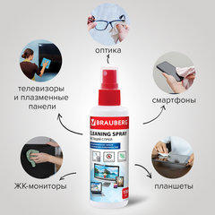 Чистящий набор для экранов всех типов и оптики BRAUBERG, комплект салфетка и спрей, 100 мл, 510341