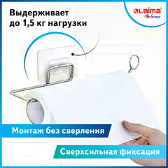 Держатель для бумажных полотенец и рулонных салфеток самоклеящийся, хром, LAIMA HOME, 607998