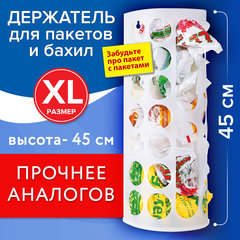 Держатель контейнер корзина XL для пакетов, мешков, бахил, 45х16х13 см, комплект крепежа, PREMIUM, 608283