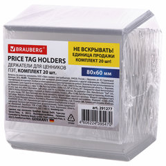 Держатели для ценников, 80х60 мм, КОМПЛЕКТ 20 шт., ПЭТ, 0,5 мм, BRAUBERG, 291277