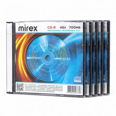 Диски CD-R MIREX, 700 Мб, 48x, Slim Case, КОМПЛЕКТ 5 шт., UL120051A8F