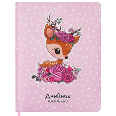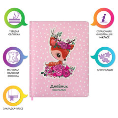 Дневник 1-4 класс 48 л., обложка кожзам (твердая), печать, аппликация, ЮНЛАНДИЯ, "ОЛЕНЕНОК", 105937