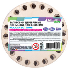 Донышки деревянные для вязания круглые, 10 штук, диаметр 10 см, BRAUBERG HOBBY, 665316