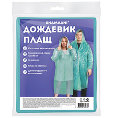 Дождевик-плащ SHAMAANI на кнопках с капюшоном предназначен для защиты от дождя и повышенной влажности воздуха. Идеально подойдет для работы на улице, отдыха на природе, рыбалки, пикника и городских прогулок.Дождевик-плащ универсального размера с капюшоном изготовлен из полиэтилена (PE). Застегивается на 4 пары кнопок из полипропилена (PP). В капюшоне есть кулиска с пластиковыми наконечниками. В рукава вставлены резинки для более плотного прилегания материала к запястью и предотвращения попадания влаги внутрь. Для многоразового использования.