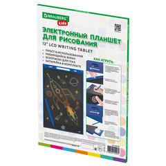 Электронный планшет для рисования диагональ 12 дюймов, 18,5х28 см, ЦВЕТНОЙ, BRAUBERG KIDS, 665303