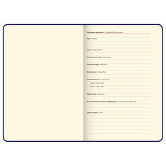 Ежедневник снабжен обширным справочным материалом. В конце имеются 7 страниц для записей и заметок. Тип ежедневника: недатированный, Формат: А5, Обложка: под кожу с вельветовым эффектом, Вид обложки: твердая, Количество листов: 160 шт., Особенности: закладка-ляссе, перфорация уголков, скругленные углы, справочная информация, фиксатор для ручки, Серия: Velvet, Тип застежки: резинка-фиксатор, Основной цвет обложки: синий, Дополнительный цвет обложки: нет, Цвет среза: нет, Цвет внутреннего блока: кремовый, Плотность внутреннего блока: 70 г/м2, Высота строки для записи: 5 мм, Тип крепления: сшивка, Печать блока: 2 краски, Подходит для блинтового тиснения: да, Подходит для тиснения фольгой: да, Длина: 213 мм, Ширина: 138 мм, Толщина: 21 мм. Код: 116243