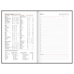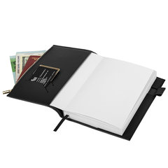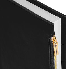 Съёмная гибкая обложка стилизована под гладкую кожу и подходит для горячего тиснения. Особенностью этого ежедневника являются большой карман на молнии и небольшие кармашки для визитных карточек на внутренней стороне обложки. Дополнением служат закладка-ляссе, с помощью которой можно быстро открыть нужную страницу, а также держатель для ручки для большего комфорта. Ежедневник снабжён обширным справочным материалом. В конце есть 7 страниц для записей и заметок. Тип ежедневника: недатированный, Формат: А5, Обложка: под гладкую кожу, Вид обложки: гибкая съёмная, Количество листов: 160 шт., Особенности: закладка-ляссе, перфорация уголков, прострочка по периметру, справочная информация, фиксатор для ручки, Серия: Zipline, Тип застежки: нет, Основной цвет обложки: черный, Дополнительный цвет обложки: нет, Цвет среза: нет, Цвет внутреннего блока: белый, Плотность внутреннего блока: 70 г/м2, Высота строки для записи: 5 мм, Тип крепления: сшивка, Печать блока: 2 краски, Подходит для блинтового тиснения: да, Подходит для тиснения фольгой: да, Подходит для УФ-печати: да, Подходит для тампопечати: да, Длина: 220 мм, Ширина: 145 мм, Толщина: 21 мм. Код: 116247