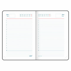 Недатированный ежедневник серии "Ritter" от GALANT – надежный спутник делового человека. Благодаря стандартному формату А5 (148х218 мм) ежедневник удобно использовать как в офисе, так и на выездных деловых встречах.Внутренний блок включает 160 листов белой бумаги плотностью 70 г/м2. Каждая страничка имеет перфорированный угол. Твердая обложка, прошитая по периметру и стилизованная под гладкую кожу фиксируется магнитной застежкой, поэтому ежедневник не откроется в сумке или портфеле и страницы не помнутся.