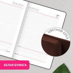 Ежедневник BRAUBERG "Magnetic X" - надежный спутник делового человека.Внутренний блок включает 160 листов белой бумаги плотностью 70 г/м2. Каждая страничка имеет перфорированный угол. Благодаря стандартному формату А5 ежедневник удобно использовать как в офисе, так и на выездных деловых встречах. Интегральная (мягкая) обложка, выполненная в классическом коричневом цвете и стилизованная под гладкую кожу, фиксируется магнитным клапаном, поэтому ежедневник не откроется в сумке или портфеле и страницы не помнутся. Подходит для горячего тиснения. Дополнением является закладка-ляссе, с помощью которой при необходимости можно быстро открыть ежедневник на нужной странице. Помимо прочего ежедневник снабжен обширным справочным материалом. В конце ежедневника есть 7 страниц для записей и заметок.