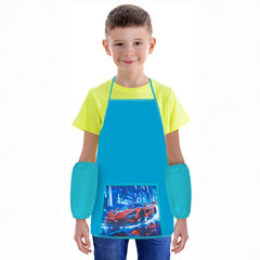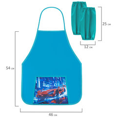 Яркая печать коллекционного дизайна на кармане фартука. Нарукавники оснащены резинкой с обеих сторон. Фартук и нарукавники помогают защитить одежду ребенка от загрязнений во время занятий трудом и творчеством.
