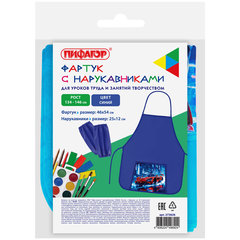 Фартук с нарукавниками для уроков труда ПИФАГОР – незаменимая вещь для защиты одежды во время уроков труда и занятий творчеством в школе, детском саду и дома. Предусмотрен для многоразового использования.Фартук и нарукавники изготовлены из водоотталкивающего полиэстера. Стандартный размер фартука – 46x54 см, размер нарукавников – 25х12 см. Кроме того, фартук оснащен карманом для канцелярии и прочих принадлежностей, которые всегда должны быть под рукой во время уроков труда и занятий творчеством.