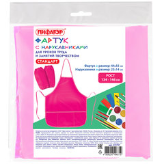 Фартук с нарукавниками для уроков труда ПИФАГОР, 3 кармана, стандартный размер, 44x55 см, розовый, 273757