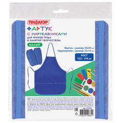 Фартук с нарукавниками для уроков труда ПИФАГОР, 3 кармана, уменьшенный размер, 39х49 см, синий, 273750