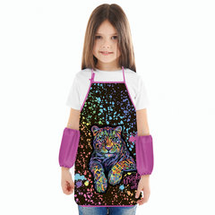Яркая печать коллекционного дизайна на фартуке. Нарукавники оснащены резинкой с обеих сторон. Фартук и нарукавники помогают защитить одежду ребенка от загрязнений во время занятий трудом и творчеством.