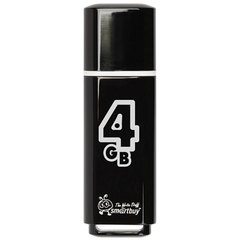 SMARTBUY Glossy – универсальный флеш-накопитель, прост в использовании, позволяет легко и быстро перенести файлы между устройствами.Флеш-диск объемом 4 Гб комплектуется специальной системой для крепления колпачка – с помощью скобки он фиксируется между двумя выступающими пластинками на устройстве. Это очень удобно и минимизирует вероятность потери защитного колпачка. За эту же скобку флешку можно прикрепить к шнурку. Выполнен из прозрачного пластика черного цвета. Размер – 55х18х9 мм. Вес – 10 г.