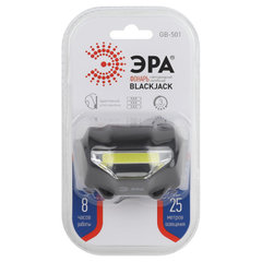Налобный светодиодный фонарь ЭРА GB-501 - яркий, надёжный и практичный.Фонарь оснащён светодиодом нового поколения СОВ, который ярче и эффективнее обычных на 50%. Такой светодиод позволяет получать более качественный свет, а цветовая температура приближена к естественному освещению. Дальность луча составляет 25 метров, а мощность - 3 Вт. Фонарь работает от батареек типа ААА, 8 часов без перерыва в самом мощном режиме. Всего режимов в фонаре 3. Фонарь освещает большую площадь, так как имеет широкий угол освещения.