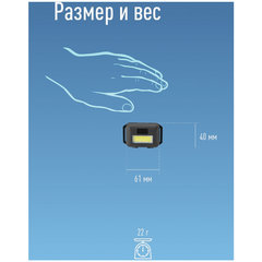 Тип фонаря: налобный, Тип элемента питания: 3 элемента AAA, Тип лампы: светодиодная , Цвет ламп: белый, Количество ламп: 1 шт., Максимальная дальность направленного света: 20 м, Количество режимов работы: 3, Время непрерывной работы: 16 ч, Регулировка яркости: да, Влагостойкость: да, Противоударный: да, Индикатор заряда: да, Длина: 6.1 см, Ширина: 4 см, Высота: 1.7 см, Материал корпуса: ударопрочный пластик, Цвет корпуса: черный, Вес: 22 г.