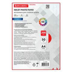 Фотобумага глянцевая, А4, 200 г/м2, односторонняя, 50 листов, BRAUBERG ORIGINAL, 363988