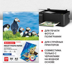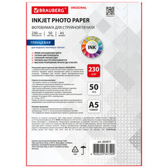 Фотобумага глянцевая, А5, 230 г/м2, односторонняя, 50 листов, BRAUBERG ORIGINAL, 363977