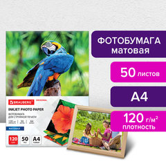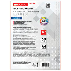 Фотобумага матовая, А4, 120 г/м2, односторонняя, 50 листов, BRAUBERG ORIGINAL, 363981