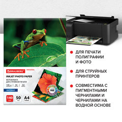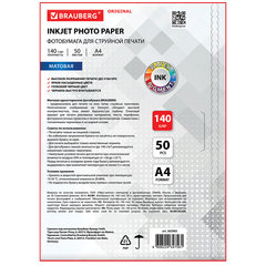 Фотобумага матовая, А4, 140 г/м2, односторонняя, 50 листов, BRAUBERG ORIGINAL, 363983