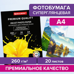 Фотобумага PREMIUM суперглянцевая, А4, 260 г/м2, односторонняя, 20 листов, BRAUBERG, 364004
