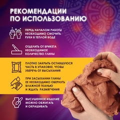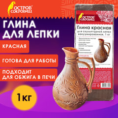 Глина для лепки красная ОСТРОВ СОКРОВИЩ, 1 кг, готовая, размачиваемая, 664681