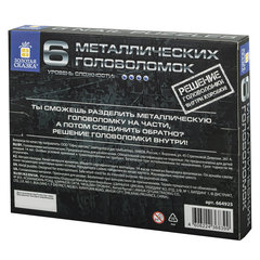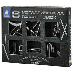 Вид игрушки: головоломка, Количество в комплекте: 6 шт., Возраст ребенка: 6+, Цвет: серебристый, Серия: Прокачай мозги, Сюжет: Гвозди, Материал: сталь, Упаковка: картонная коробка.
