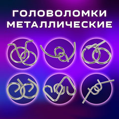 Головоломки металлические ЗОЛОТАЯ СКАЗКА (уровень сложности "НОВИЧОК"), набор 6 штук, 662087