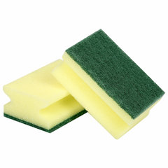 Применение: для мытья посуды, Количество в упаковке: 2 шт., Чистящий слой: абразивный, Высота: 4.2 см, Ширина: 9.6 см, Глубина: 6.4 см, Соответствует требованиям ГОСТа: нет, Материал: поролон + абразив, Цвет: желтый, Упаковка: пакет.