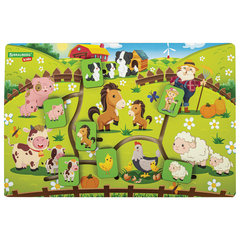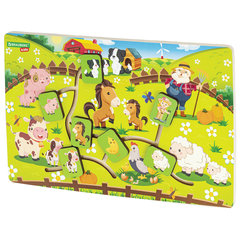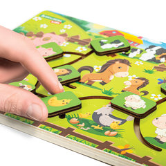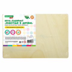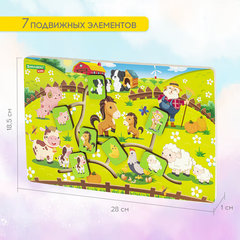 Игра-лабиринт деревянная развивающая "Животные в деревне", с бегунками, BRAUBERG KIDS, 665264