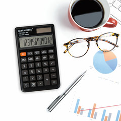 Калькулятор карманный BRAUBERG CX-102C-BK (76x126 мм), 12 разрядов, двойное питание, ЧЕРНЫЙ, 272647