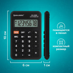 Калькулятор карманный BRAUBERG DC-210N (63х98 мм), 8 разрядов, черный, 272953